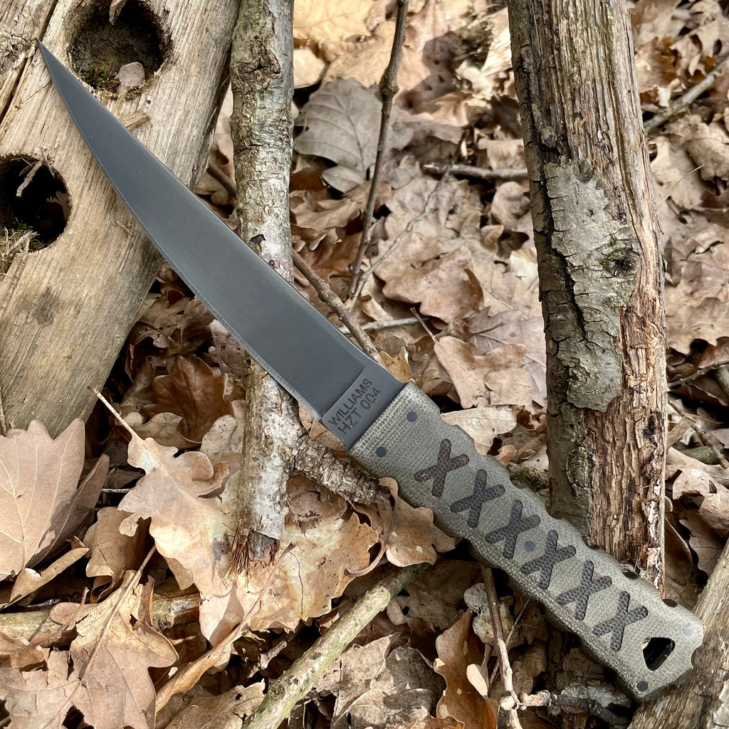 Our full sized fixed blade is finally back. Designed for the rigors of modern combat while remaining true to classical design concepts, this blade excels at both slashing and penetration. The combination of 80CrV2 high-carbon steel, and Daniel Winkler's expert craftsmanship, make for a true workhorse that is exceedingly tough and resilient while maintaining excellent edge retention. Please allow 1-2 weeks for delivery.