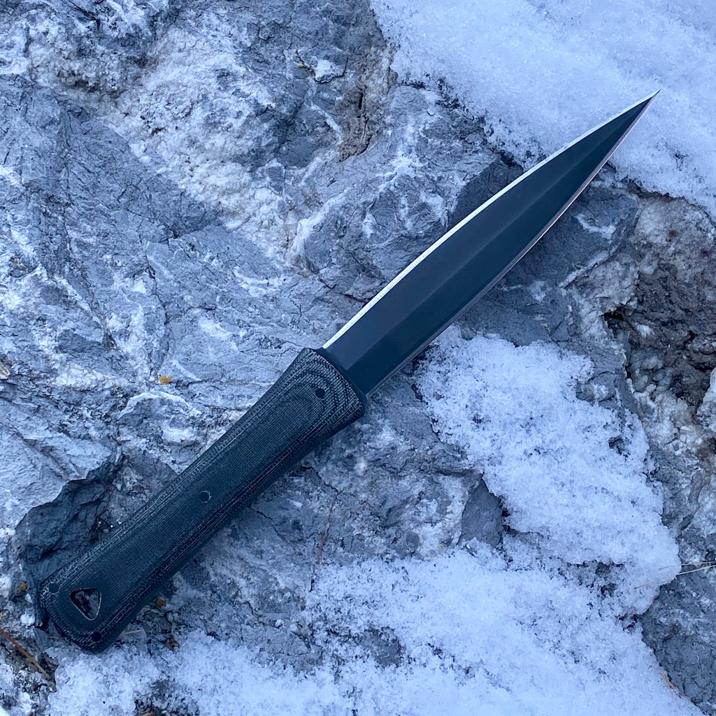 Our second Special Mission release, originally designed as a request from elite special operators to fit their mission requirements, draws its inspiration from a study of daggers dating back to antiquity.  The subtle leaf shape to the blade provides for both improved slashing and penetration. The deeply waisted handle facilitates grip without the necessity of a cross guard, making for easy covert carry and rapid access in non-permissive environments. Made of exceedingly tough 80CrV2 steel, with a micarta handle, this dagger is built by Winkler Knives to heirloom quality.