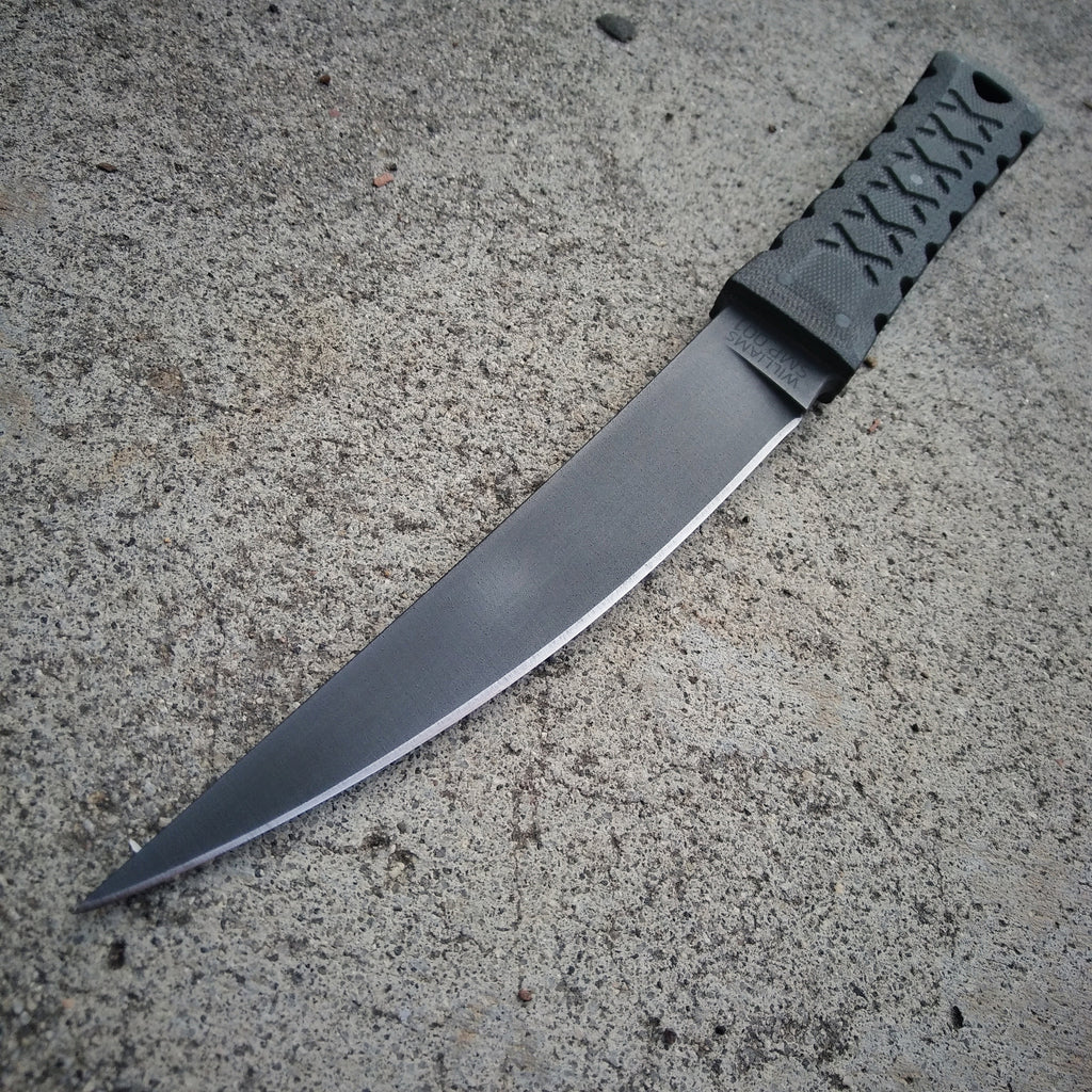 Our first collaboration with master blade smith Daniel Winkler, this tanto was a special request by an elite unit. Designed for the rigors of modern combat while remaining true to classical design concepts, this blade excels at both slashing and penetration. The combination of 80CrV2 high-carbon steel, and Daniel Winkler's expert craftsmanship, make for a true workhorse that is exceedingly tough and resilient while maintaining excellent edge retention.