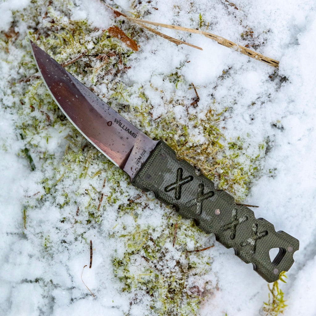 The smallest blade in our Shobu Zukuri series, with the same classic grind for excellent lateral strength and cutting ability. Part of our EDC fixed blade line, this knife is optimized for compact and comfortable carry. Featuring an M390 blade, with market leading edge retention, and green canvas micarta handle scales with brass pins. We produced this blade with TRC Knives because of their reputation for outstanding craftsmanship and attention to detail. The SZM 002 is a knife made for hard use, but with the refinement of a collector’s piece. This is an individually numbered batch of 150 pieces. Shipping end of December.