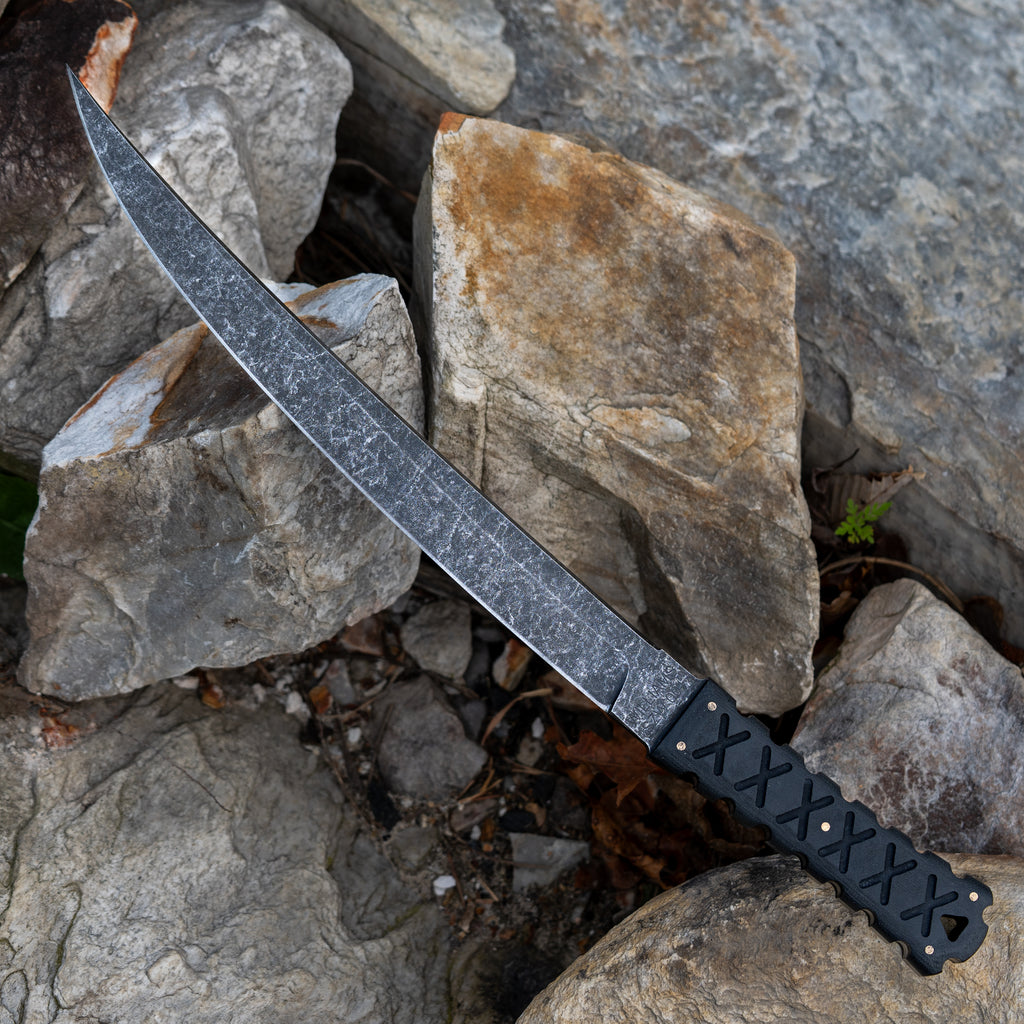 The largest blade we’ve made to date, based on our classic Hisshou, hand built in North Carolina by our friends at Primitive Woodsman. Featuring a 13” 80CrV2 blade in 1/4” steel for serious use, and a black canvas Micarta handle. The Hisshou (必勝) kanji is a custom work from Shodō artist Koshin. This is a limited run of 50 pieces.